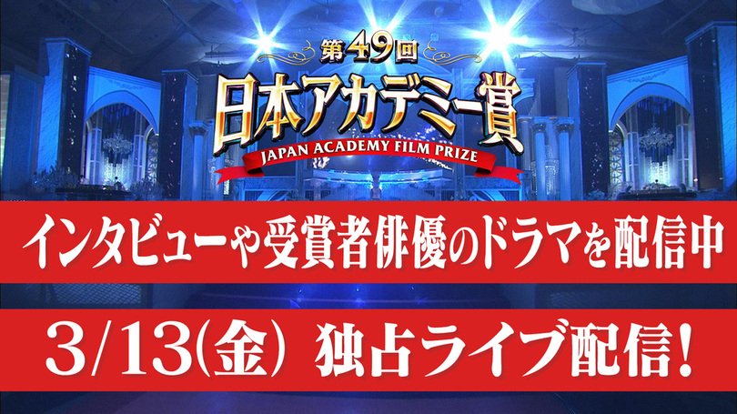 ・『第49回 日本アカデミー賞』授賞式 見逃し配信 19:00配信予定