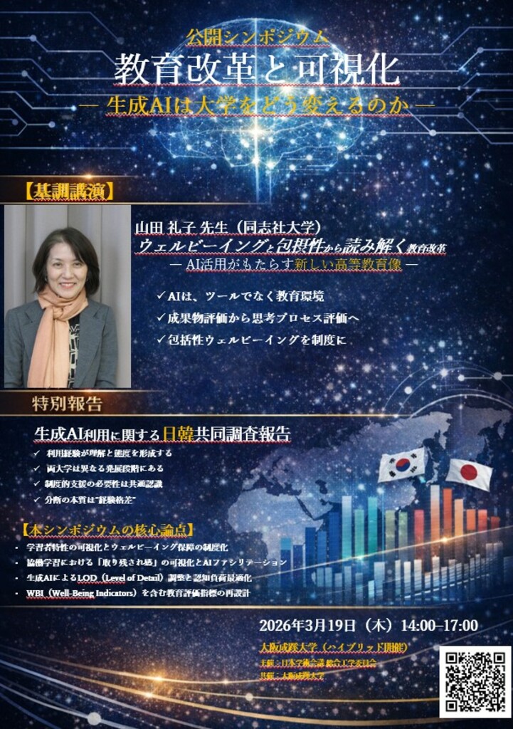 【大阪成蹊大学】公開シンポジウム「教育改革と可視化-生成AIは大学をどう変えるのか-」を開催(3月19日)