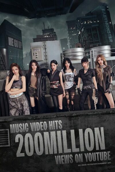 所属事務所YGエンターテインメントによると、ミニアルバム第2弾のタイトル曲「WE GO UP」のミュージックビデオ(MV)が9日午後2時1分ごろ、YouTube再生数2億回を突破した。2025年10月10日の公開から150日で到達した。