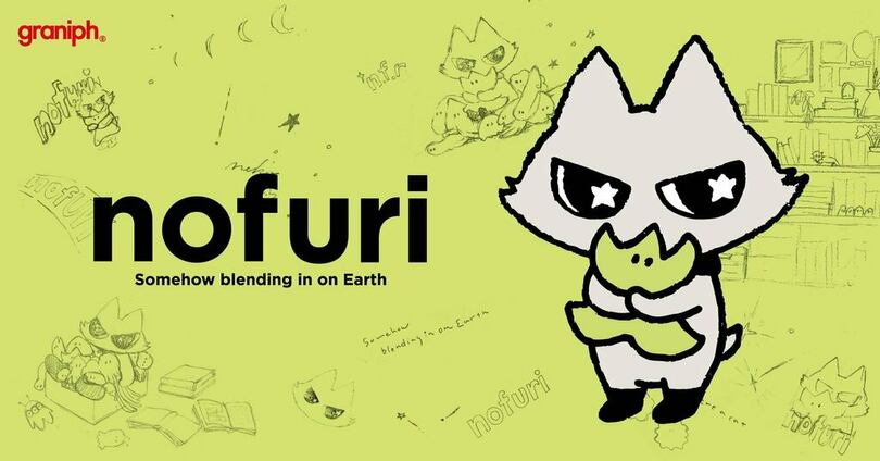どこかぎこちない表情をしたこの子はノフリ。「ネコのフリ」をして地球の生活に溶け込めるよう「ネコ練習中」。興味があるモノを見つけると、体の色や模様を変えてしまうほど夢中に。そんなふうに自分の“好き”を全身で表現しながら、人間の文化を楽しんでいます。相棒のスターフルーツとともに、これから何に興味を持ってどんな「フリ」をするのでしょう。