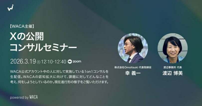 2026年3月19日(木)12:10 〜12:40 Xの公開コンサルセミナー 〜WACA公式アカウントの運用コンサルを生公開