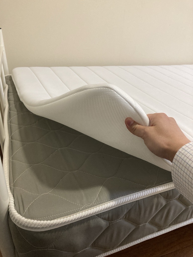 今お使いの寝具の上に一枚重ねて敷くだけで理想的な寝姿勢を保つことができるマットレストッパー。優れた復元性と体圧分散で肩や腰の負担を軽減し、楽に寝返りができるので熟睡を促します。