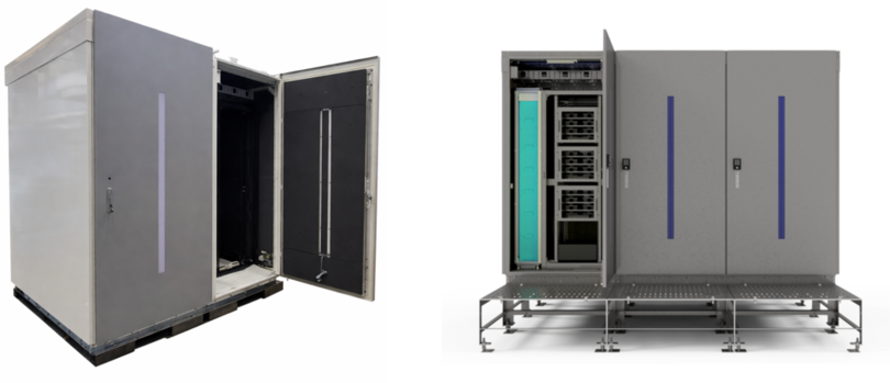 受電キュービクル筐体を活用したモジュール構造のため、新たにデータセンター建屋を建設する必要がなく、屋内外どちらにも設置できます。現地での設計や施工を最小限に抑えることで、品質の安定化と短納期を実現します。