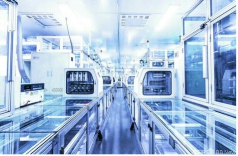 緑色のランプが点滅し、ゴーカートほどの大きさの自動搬送機が、製造されたばかりのセルを載せてバッテリーパック工場へと運搬している。バッテリー生産ラインでは、ロボットアームがバッテリー管理システム、密閉ケース、絶縁ボルトを取り付け、リチウムバッテリーパックが完成する。