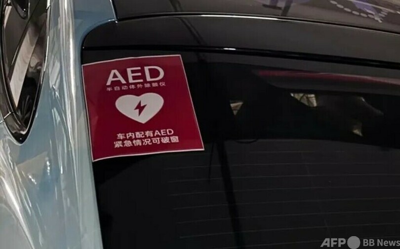 中国では近年、李さんのように自費で車内にAEDを設置し、窓に「車内にAED設置、緊急時には窓を破ること」と書かれた表示を貼るオーナーが増えています。資料によると、AEDは医者でなくても使用できる心停止患者の救急用携帯型医療機器で、救命の鍵となる「4分のゴールデンタイム」内にこの機器を使い、患者に対し除細動や心肺蘇生を実施することで、突然死を効果的に阻止できるものです。(c)CGTN Japanese/AFPBB News