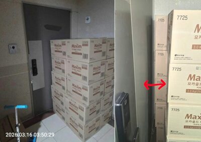 「これは配達員の嫌がらせ?」 玄関ドアを塞ぐ20箱のコーヒー…韓国・閉じ込められた住民がSNSで告発
