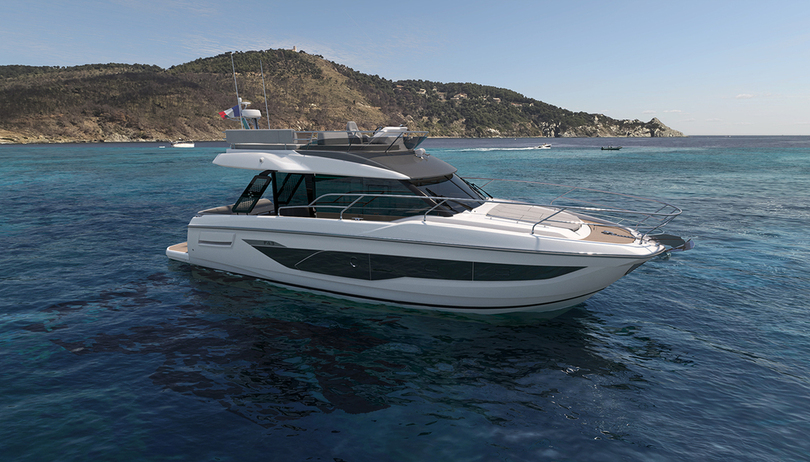 「PRESTIGE F4.3」は、新たなデザインコンセプト「ザ・フレンチ・リヴィエラ」のもと開発された新世代のサロンクルーザーです。新しい外観デザインは、水の動きからインスピレーションを得た、エレガントかつダイナミックな曲線に仕上げています。また、船の両側面に配置したファッションプレートは、新世代「F」シリーズのアイデンティティを象徴しています。
