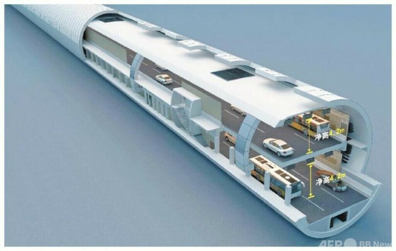 トンネルの上層車道スラブの施工は現場打ちコンクリート構造で、1ブロック当たりの横方向の幅は13メートル、厚さは0.7メートルであり、施工量が大きく工法が複雑で、コンクリート打設総量が3万立方メートルを超え、施工難易度は同種工事のトップクラスです。完成後、黄河両岸間の通行所要時間は、従来の40分から4分へと大幅に短縮されます。(c)CGTN Japanese/AFPBB News