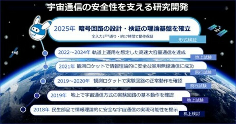 本研究で確立した理論基盤は、宇宙が社会インフラとして広く利用される時代において、安全性と信頼性を数学的に保証する基盤技術として、宇宙通信サービスの安定運用に寄与します。また、宇宙分野に限らず、安全性と信頼性が極めて重要となる分野への応用も期待できます。今後も、数学的保証に基づくセキュリティ技術の確立に向けて、更なる研究開発を推進します。