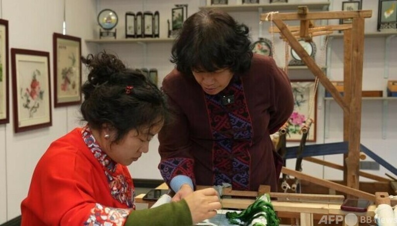 村民の龔秀桃(Gong Xiutao)さんは刺繍をしながら「以前は広東省(Guangdong)に出稼ぎに行っていたが、故郷で刺繍の講習を開くと聞いて戻ってきた。今では機織りも刺繍も何でも自在にできるようになり、収入も安定し、そのうえ年寄りや子どもの面倒をみることができる。外地で働くよりもずっと安心だ」と語った。