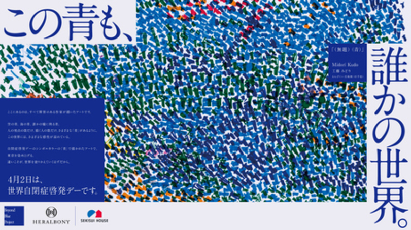 2007年の国連総会で4月2日が「世界自閉症啓発デー」と決議されて以来、社会全体で多様性への理解を深める動きが広がっています。 このたび、ヘラルボニーが「この青も、誰かの世界。」というメッセージのもと、“ちがい”が社会を豊かにする価値として広がるアクションを展開する「Beyond Blue Project」を始動しました。