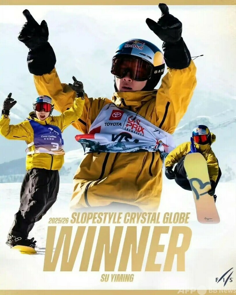 【4月1日 CGTN Japanese】国際スキー・スノーボード連盟(FIS)は北京時間3月28日、2025/2026年シーズンの男子スノーボードのスロープスタイル・ワールドカップの年間総合優勝者は中国選手の蘇翊鳴(スー・イーミン)と発表しました。