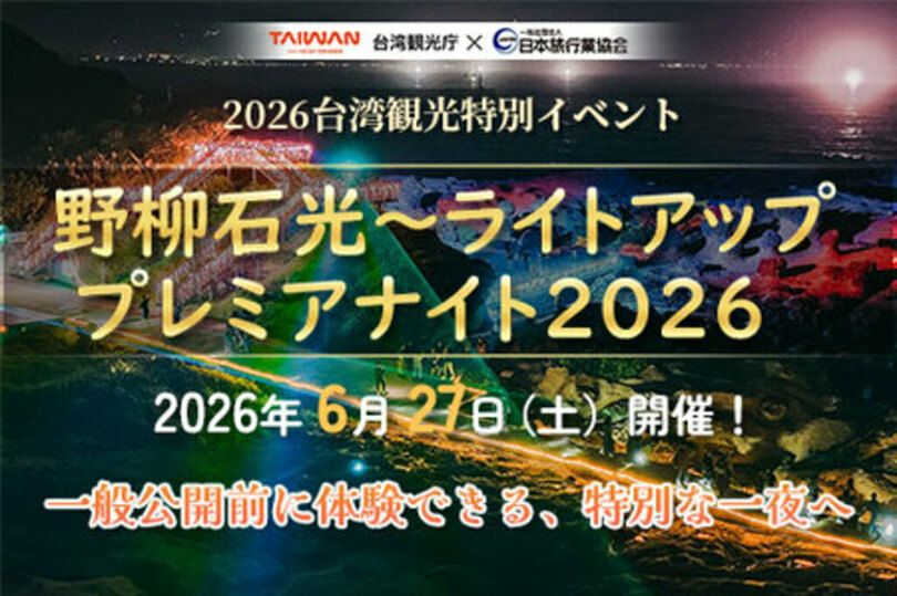 台湾の交通部観光署(以下、台湾観光庁)は、日本旅行業協会(JATA)と連携して台湾北部を代表する景勝地である野柳ジオパーク(地質公園)にて、日本市場向けの特別招待制イベント「野柳石光~ライトアップ プレミアナイト2026」を開催いたします。