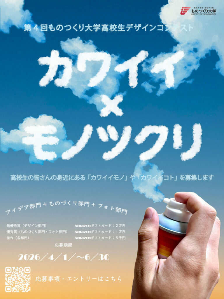 ものつくり大学(埼玉県行田市/学長:佐藤勲)は、全国の高校生から「面白い、楽しい、誰かに紹介してみたい」と感じるアイデアなどを募集する「第4回ものつくり大学高校生デザインコンテスト」を開催します。募集期間は、2026年4月1日(水)から6月30日(火)まで。アイデア部門、ものづくり部門、フォト部門の3部門から優秀賞、佳作を選考します。