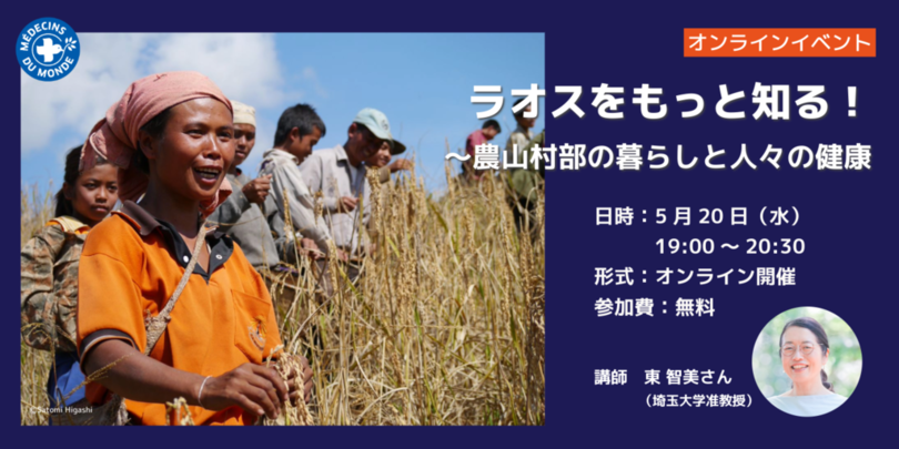 昨年秋に皇室の愛子さまが初めて海外ご公務として渡航されたのがラオス。お隣のベトナムやタイに比べてまだ日本で知られていることが少ない国です。今回のイベントではラオスについて知ることができるクイズにはじまって、ラオスのなかでも特に知られていない農山村部のラオスの人々の生活と健康などディープなラオスの素顔に迫ります。豊かな自然に囲まれ、伝統的な文化の息づく地域ですが開発の波は例外なく人々の暮らしを変えつつあります。また、一方で病気やケガなどの場合には、病院へのアクセスが困難で、課題を抱えています。ラオスで調査・政策提言活動をされてきた埼玉大学准教授の東智美先生をお招きし、世界の医療団の現地での活動と併せて、ラオスの「今」を伝えます。