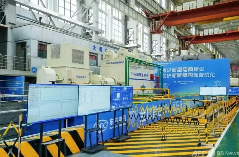 研究開発の過程において、東方電機は中国電力科学研究院や清華大学などの研究機関と連携し、高電圧領域における「絶縁」と「冷却」という二大技術的課題を解決しました。これにより、モーターの定格電圧を業界で既存の最高値であった27kVから35kVへと引き上げ、電力系統の電圧等級との直接的な整合を実現しました。中間の昇圧トランスとその付帯設備を撤廃することに成功し、完全な知的財産権を有する高圧直結技術の新たな道を開拓したとのことです。(c)CGTN Japanese/AFPBB News