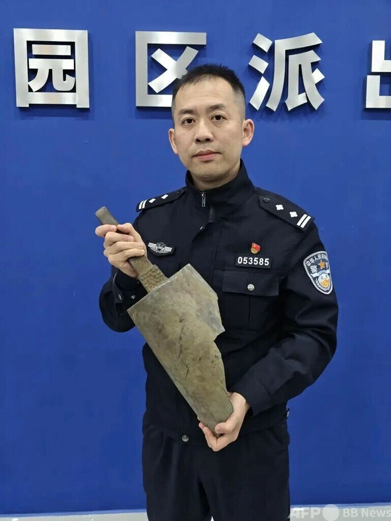 警察は考古学の専門家を招いて初期的な鑑定を行いました。その結果、この器物は少なくとも1000年以上前のものと確認され、春秋戦国時代の青銅句鑃に酷似していると判断されました。歴史的、芸術的、科学的にも高い価値があるとされています。(c)CGTN Japanese/AFPBB News
