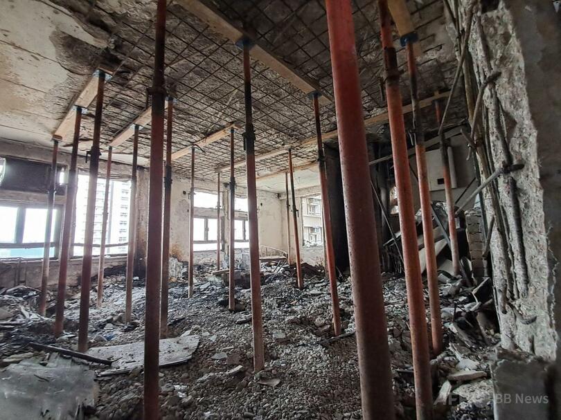 政府当局が公開した画像には、天井や壁が崩壊し、焼け焦げた部屋の様子や、内部ががれきで散乱している部屋の様子が捉えられていた。