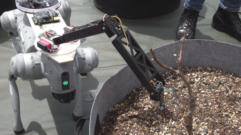 今回、栽培管理のベースとして開発されたのは4足歩行ロボットの背中に、アームロボット、制御マイコン、ドローンポートを集約した栽培管理特化型ユニットです。 私たちはこれを「ランドセル」と命名し、用途に合わせて背負い直すことで、多様なミッションをこなす仕様を目指しています。