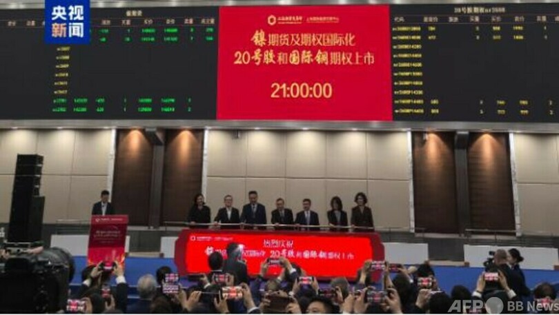 中国の先物市場で目下対外開放が承認された特定品目は計38種類に達し、エネルギー、金属、化学工業、農産物などの多分野をカバーする開放品目体系が形成されています。2026年3月末時点で、海外取引者の権益は前年末と比べて99%増の500億元(約1兆1500億円)を突破し、過去最高を記録しました。(c)CGTN Japanese/AFPBB News