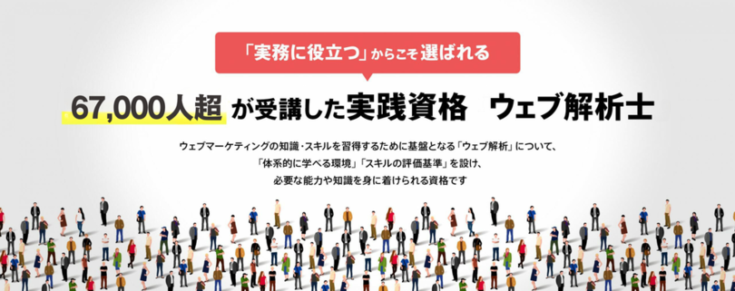 アクセス解析を軸としたウェブ解析スキルを身につけ、データを読み取り、正しい判断ができるスキルの会得を目標とした資格です。グレード別に三つの資格があります。