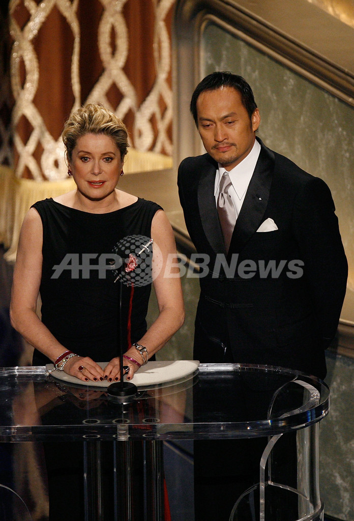ニュース ライフ <第79回アカデミー賞>会場に渡辺謙が登場 - 米国 2007年2月26日 11:17 発信地:米国 [ 北米 米国 ] このニュースをシェア ‹ › ❮ 5/8 ❯ 写真は、ステージでスピーチをする渡辺謙(右)と女優のカトリーヌ・ドヌーヴ(%%Catherine Deneuve%%)。(c)AFP/Getty Images Kevin Winter 画像作成中 ! 【ロサンゼルス/米国 26日 AFP】ハリウッドでは25日、第79回アカデミー賞(The 79th Academy Awards)授賞式が開催された。会場となったコダック・シアター(Kodak Theatre)周辺にはレッドカーペットが敷き詰められ、約3400人もの著名人が続々と登場した。写真は、会場に登場した渡辺謙(右)と妻の南果歩。(c)AFP/Getty Images Hector MATA ライフ 一覧へ> メディア・報道関係・法人の方向け 写真・動画 購入のお問合せ>