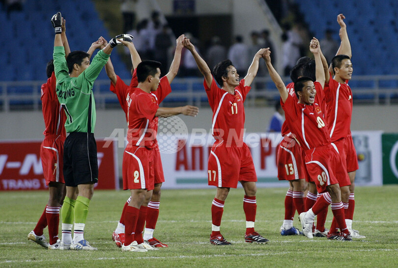 スポーツ サッカー <サッカー 北京五輪アジア2次予選>ベトナム オマーンに快勝し3勝目を挙げる - ベトナム 2007年4月18日 23:03 発信地:ベトナム [ アジア・オセアニア ベトナム ] このニュースをシェア ‹ › ❮ 1/13 ❯ 写真は、試合後にスタンドのサポーターへ挨拶するベトナムの選手達。(c)AFP/HOANG DINH Nam 画像作成中 ! 【ハノイ/ベトナム 18日 AFP】サッカー、北京五輪アジア2次予選・グループC、ベトナムvsオマーン。試合はベトナムが2-0でオマーンを降し、通算成績を3勝1敗として勝ち点を9に伸ばした。写真は、試合後にスタンドのサポーターへ挨拶するベトナムの選手達。(c)AFP/HOANG DINH Nam サッカー 一覧へ> メディア・報道関係・法人の方向け 写真・動画 購入のお問合せ>