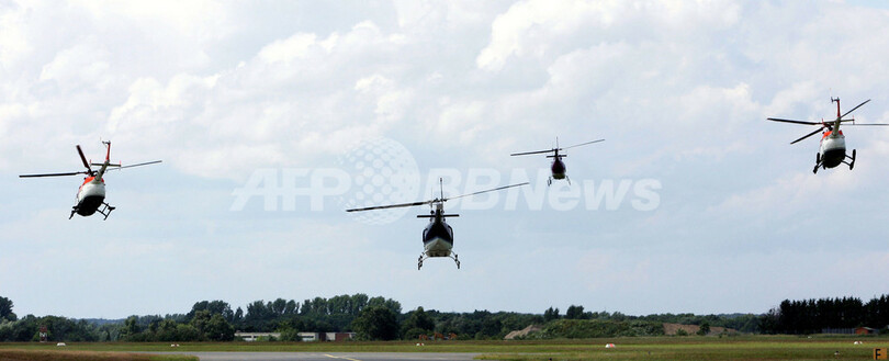 【6月19日 AFP】ドイツ人作曲家カールハインツ・シュトックハウゼン(Karl-heinz Stockhausen)の弦楽四重奏曲『ヘリコプター弦楽四重奏曲(Helikopter-Streichquartett)』のコンサートが17日、ドイツ西部にあるブラウンシュヴァイク(Braunschweig)の空港で行われた。同曲は、4台のヘリコプターに奏者がそれぞれ乗り込み演奏される。(c)AFP/DDP