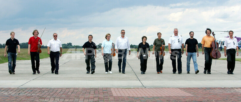 【6月19日 AFP】ドイツ人作曲家カールハインツ・シュトックハウゼン(Karl-heinz Stockhausen)の弦楽四重奏曲『ヘリコプター弦楽四重奏曲(Helikopter-Streichquartett)』のコンサートが17日、ドイツ西部にあるブラウンシュヴァイク(Braunschweig)の空港で行われた。同曲は、4台のヘリコプターに奏者がそれぞれ乗り込み演奏される。(c)AFP/DDP