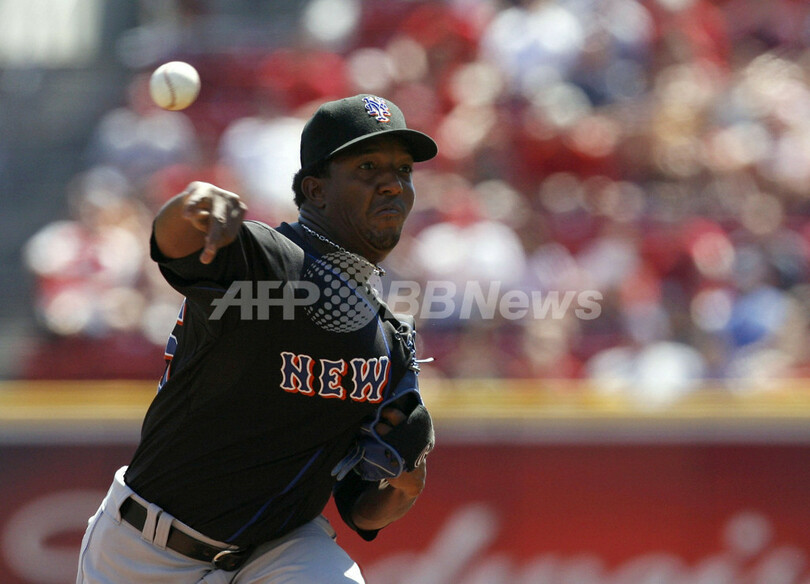 【9月4日 AFP】07MLB、シンシナティ・レッズ(Cincinnati Reds)vsニューヨーク・メッツ(New York Mets)。昨年の10月5日に受けた右肩の手術から復帰後初登板となったメッツの先発ペドロ・マルチネス(Pedro Martinez)は、2回にレッズのアーロン・ハラング(Aaron Harang)から三振を奪って史上15人目となる通算3000奪三振を達成するなど、5回5安打3失点4奪三振で今季初勝利を挙げた。試合はメッツが10-4でレッズを降した。(c)AFP