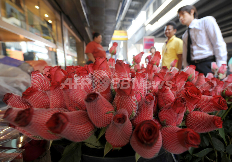 新婚カップルだけでなく、タイ警察にとってもバレンタインデーは特別な日だ。未成年の性行為を防止すべく、同日夜間にはバンコク市内の繁華街に警察の特別チームが配備される。(c)AFP