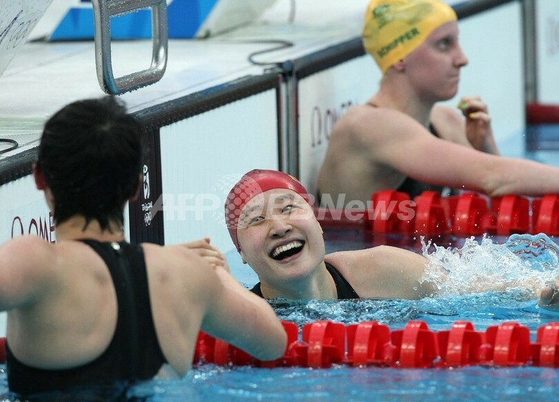 また、銀メダルは2分04秒72を記録した同じく中国の焦劉洋(Liuyang Jiao)が、銅メダルは2分06秒26を記録した前世界記録保持者のオーストラリアのジェシカ・シッパー(Jessicah Schipper)が獲得した。(c)AFP