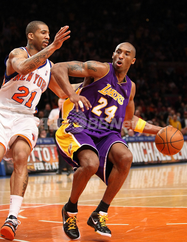 【2月3日AFP】08-09NBA、ニューヨーク・ニックス(New York Knicks)対ロサンゼルス・レイカーズ(Los Angeles Lakers)。試合はコービー・ブライアント(Kobe Bryant)が61得点を記録し、レイカーズが126-117で勝利し、3連勝を飾った。