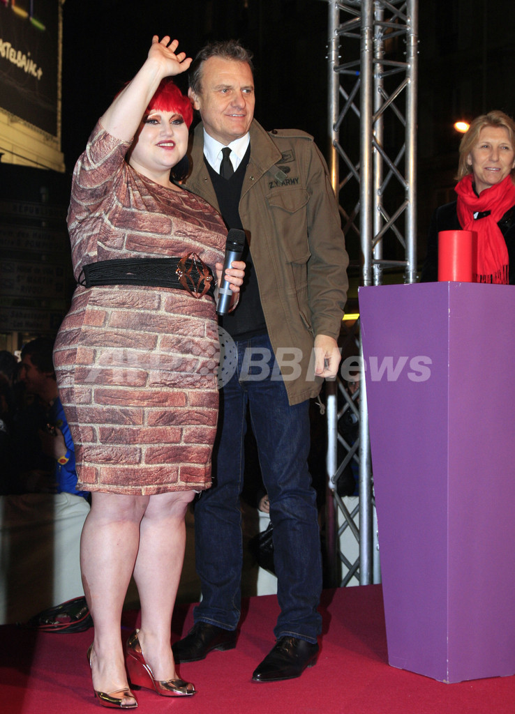 これを記念して17日、デパートでイルミネーション点灯式が開催され、カステルバジャック本人と歌手のベス・ディットー(Beth Ditto)が登場。ディットーのインパクトあるレンガプリントのドレスは、もちろんカステルバジャックのデザイン。2人揃ってイルミネーションにライトを灯した。(c)Fashion Week Daily/MODE PRESS