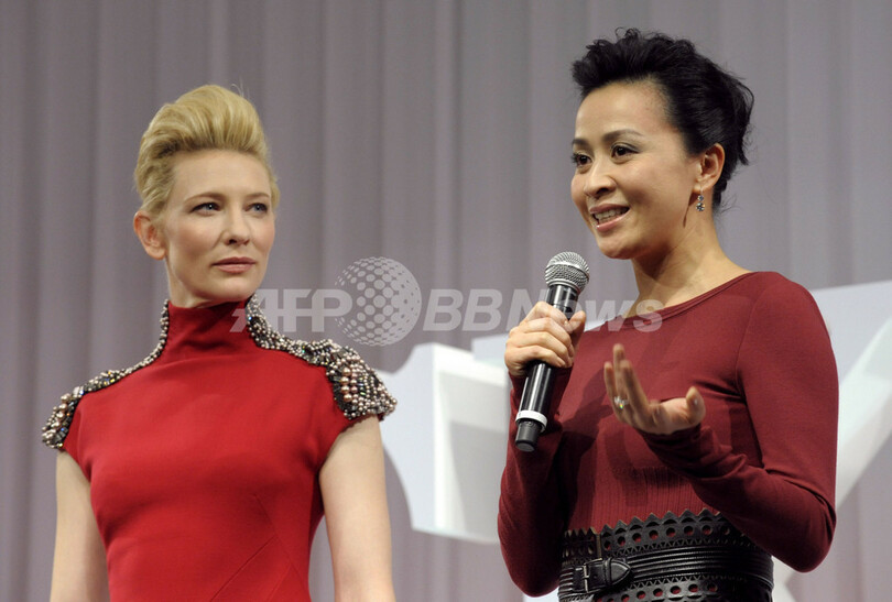 写真は、記念イベントに登場した香港女優カリーナ・ラウ(Carina Lau、右)と豪女優ケイト・ブランシェット(Cate Blanchett、2010年1月26日撮影)。(c)AFP/TOSHIFUMI KITAMURA