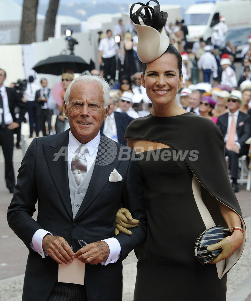 会場には、公妃のウエディングドレスを手がけたジョルジオ・アルマーニ(Giorgio Armani)をはじめ、カール・ラガーフェルド(Karl Lagerfeld)やロベルト カヴァリ(Roberto Cavalli)といったデザイナーや、モデルのイネス・ド・ラ ・フレサンジュ(Ines de la Fressange)、ナオミ・キャンベル(Naomi Campbell)、「LVMH」のベルナール・アルノー(Bernard Arnault)会長兼CEO夫妻などファッション界の大御所も多数出席した。(c)AFP