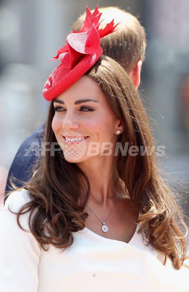アルバータ(Alberta)で8日に開かれたカウボーイの祭典「カルガリー・スタンピード(Calgary Stampede)」には、真っ白なカウボーイハットをかぶって出席。カルガリー(Calgary)動物園で開かれたレセプションでは「キャサリン・ウォーカー(Catherine Walker)」の真っ赤なコートとドレスを着用し、カナダのシンボルであるメープルリーフをかたどったダイヤモンドのブローチをコーディネートした。