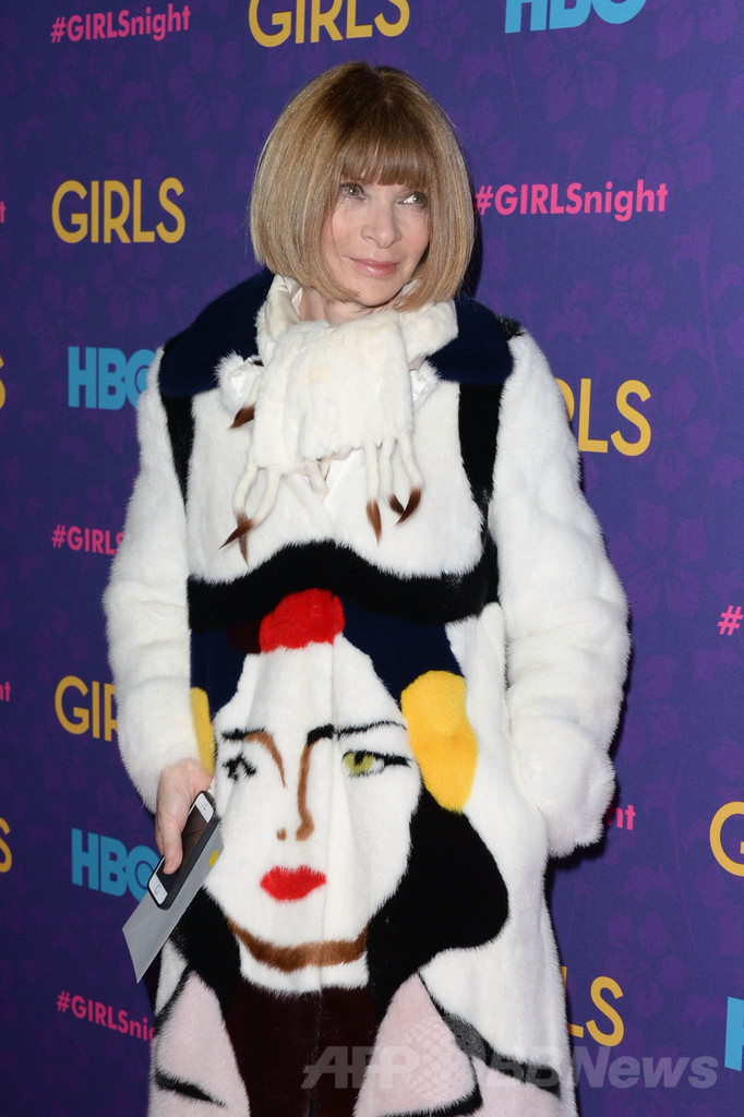 この日、米VOGUE誌のアナ・ウィンター(Anna Wintour)編集長は「プラダ(PRADA)」の2014年春夏コレクションで発表されたコートを着用し、出席した。(c)MODE PRESS