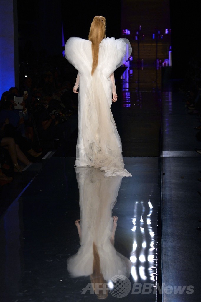 【7月10日 AFP】フランス・パリ市内で6日から11日まで14/15年秋冬パリ・オートクチュールコレクションが開かれている。
