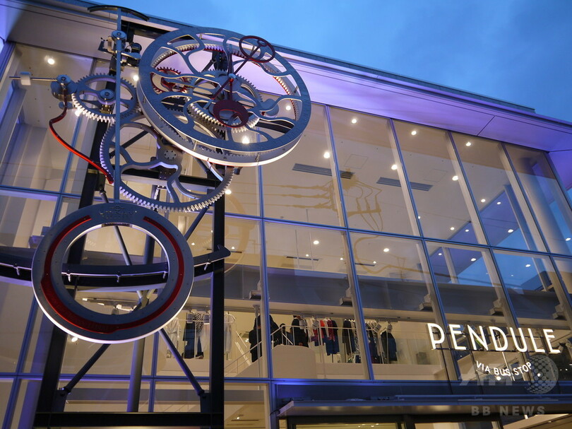店舗のシンボルとなるのは、店名の由来にもなった大きな振り子(PENDULE)時計だ。型破りな時計製作で知られる「ユティナム(UTINAM)」社のフィリップ・レブル(Philippe Lebru)がデザインを手がけた大時計が、ショップ外壁に設置されている。