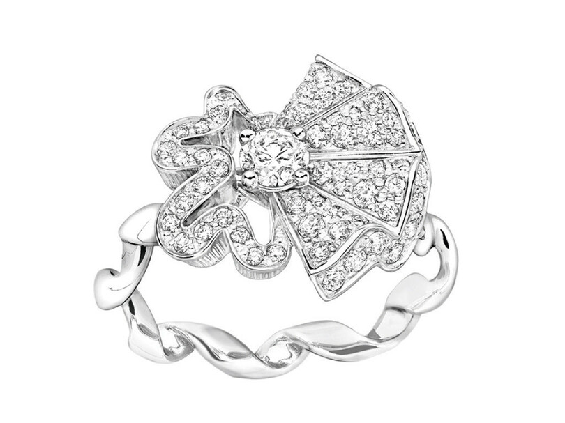 新作は、1948年に誕生したバックにボリュームを持たせた千鳥格子の「ココット」ドレスをインスピレーションに、ホワイトゴールドとダイヤモンドのアシンメトリーなリングとネックレスが登場。また、「ミリュ ドゥ シェクル」ラインの、布地に宿る幾何学を基にしたデザインに着想を得て、ホワイトゴールドとダイヤモンドのネックレスやピアス2種、ホワイトゴールドにダイヤモンドおよびピンクゴールドにダイヤモンド(またはダイヤモンドなし)のリング3種を新たに加えた。