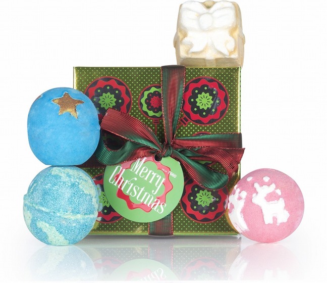 今回登場するクリスマス新商品の中でも注目のアイテムは、期間限定のバスボム4種類をセットにしたバスタイムギフト「メリークリスマス」。バスタブに温かなお湯をたっぷりためて豊かな香りのバスボムを放ち、夢のようなバスタイムを過ごせば、喜び溢れるクリスマスが迎えられそう!クリスマスらしいトナカイや星がキュートな柄のバスボムで、ギフトにも最適だ。