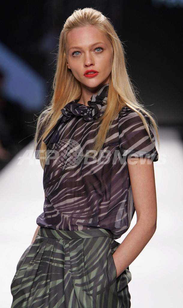 【テキサス/米国 9日 AFP】セフォラ(Sephora)主催の「ファッション・ウィーク・ライブ(Fashion Week Live)」が8日、テキサス州ヒューストンで開催された。同イベントでは、ザック・ポーゼン(Zac Posen)、カルバン・クライン(Calvin Klein)、マイケル・コース(Michael Kors)などの有名ブランドが07/08年秋冬新作コレクションを披露した。写真は、ショーに登場したモデルのサーシャ・ピヴォヴァロヴァ(Sasha Pivovarova)。(c)AFP/Getty Images Mark Mainz
