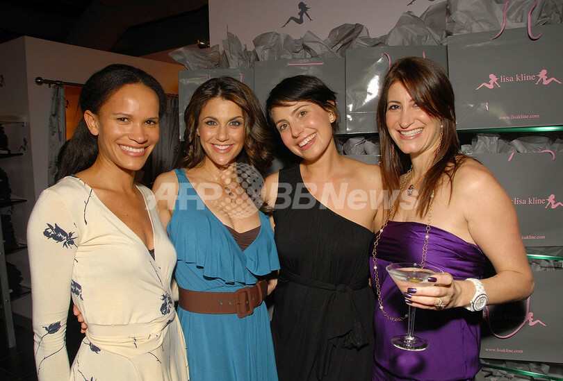 【ビバリーヒルズ/米国 24日 AFP】ビバリーヒルズにリサ・クライン(Lisa Kline)の新店舗が21日にオープンし、オープニングイベントが開催された。写真は(左から)、Angeleno Magazine編集長のAmanda Luttrell Garrigus、女優のサマンサ・ハリス(Samantha Harris)、デザイナーのRachel Pally、オーナーのリサ・クライン。(c)AFP/Getty Images Charley Gallay