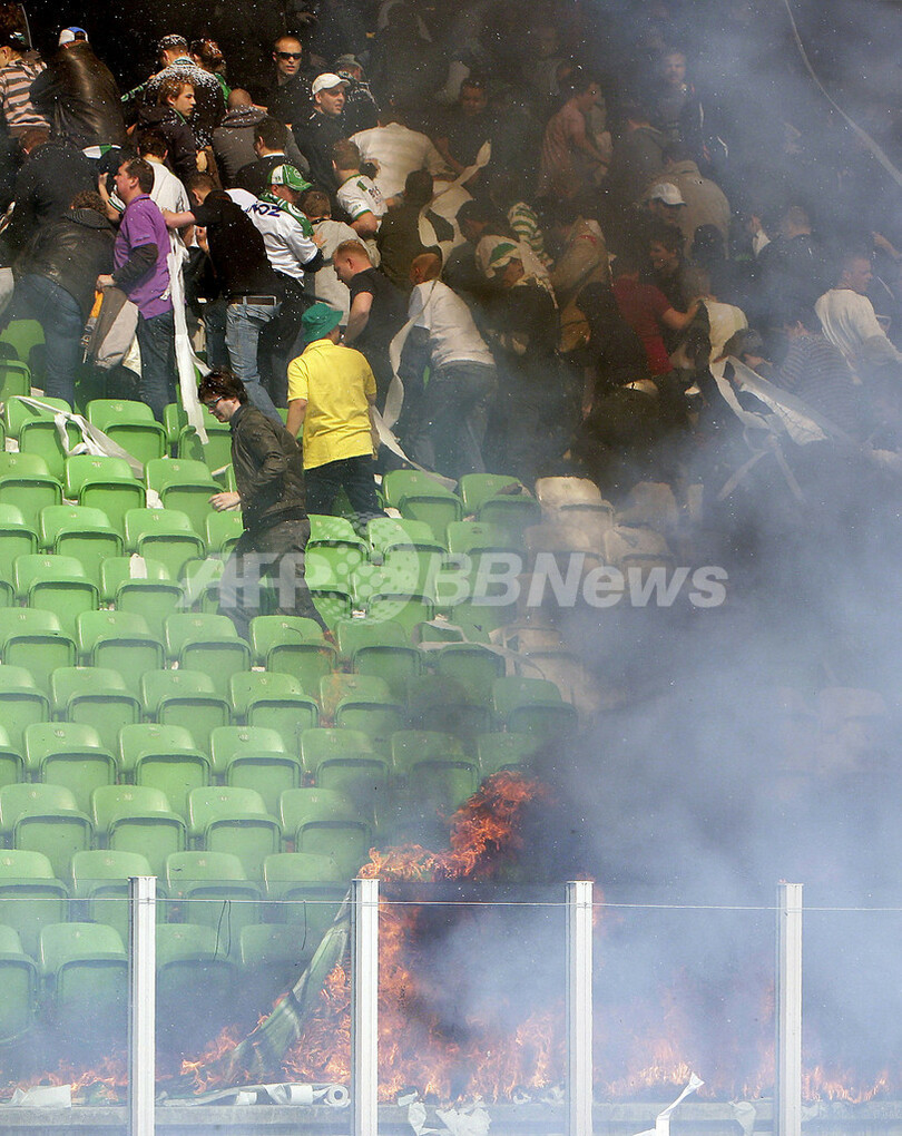 スポーツ サッカー フローニンゲン対アヤックス戦はスタジアム内火災で延期に 2008年4月14日 11:15 発信地:フローニンゲ/オランダ [ ヨーロッパ オランダ ] このニュースをシェア ‹ › ❮ 1/4 ❯ 出火現場から離れるサポーター。(c)AFP/ANP/KOEN VAN WEEL 画像作成中 ! 【4月14日 AFP】現地13日に予定されていた07-08オランダ・エールディビジ・第33節のフローニンゲン(Groningen)対アヤックス(Ajax)戦は、試合前にスタジアム内で小規模の火災が発生したため延期となった。フローニンゲン警察は、火災で1名がやけどを負い、また19名が気道熱傷を負ったことを発表している。(c)AFP サッカー 一覧へ> メディア・報道関係・法人の方向け 写真・動画 購入のお問合せ>