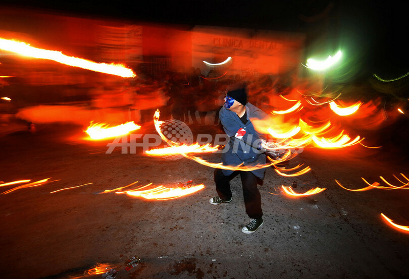 【9月3日 AFP】中米エルサルバドルで8月31日、首都サンサルバドル(San Salvador)近郊の都市ネハパ(Nejapa)で火の玉を投げ合う祭り「ラ・レクエルダ(La Recuerda、追悼の意)」が開かれた。