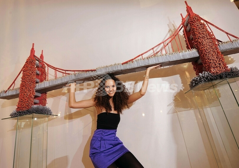 ニュース ライフ こぼれ話 モデルがヒョイ、筆記具でできた金門橋 ドイツで文房具展示会 2010年1月30日 16:45 発信地:フランクフルト/ドイツ [ ヨーロッパ ドイツ ] このニュースをシェア ‹ › ❮ 1/3 ❯ ドイツ・フランクフルト(Frankfurt)披露された、オフィス用品と文房具の見本市「ペーパーワールド2010(Paperworld 2010)」に出展される数百本の筆記具で作られたサンフランシスコ(San Francisco)のゴールデンゲートブリッジ(Golden Gate Bridge)の模型(2010年1月29日撮影)。(c)AFP/DDP/THOMAS LOHNES 画像作成中 ! 【1月30日 AFP】ドイツ・フランクフルト(Frankfurt)で29日、オフィス用品と文房具の見本市「ペーパーワールド2010(Paperworld 2010)」に出展される数百本の筆記具で作られたサンフランシスコ(San Francisco)のゴールデンゲート・ブリッジ(Golden Gate Bridge)の模型が披露された。見本市は30日から来月2日まで開催される。(c)AFP ライフ 一覧へ> メディア・報道関係・法人の方向け 写真・動画 購入のお問合せ>