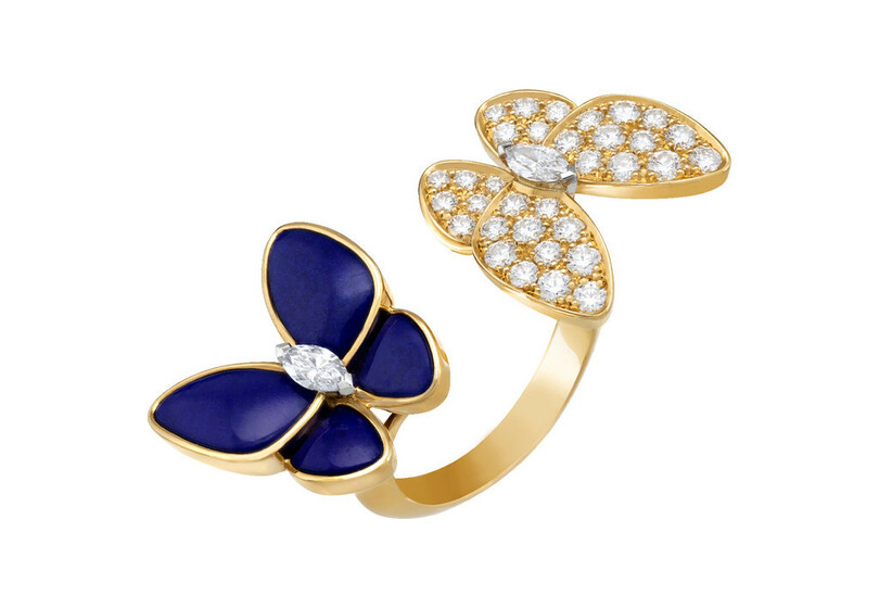 ・ドゥ パピヨン アントレ レ ドア リング(イエローゴールド、ホワイトゴールド、ダイヤモンド、ラピスラズリ)