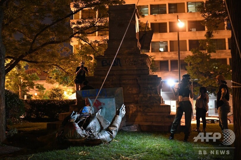 【6月20日 AFP】米メディアの報道によると、首都ワシントンで19日、デモ隊が南部連合のアルバート・パイク(Albert Pike)将軍の像を倒して放火した。この像は、屋外に建てられた南部連合の将軍の像としてはワシントンで唯一のもの。